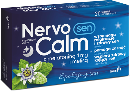 Suplement diety NervoCalm Sen z melatoniną 1 mg i melisą został stworzony z myślą o osobach dorosłych chcących wesprzeć naturalne procesy zasypiania, utrzymać dobrą jakość snu oraz dążących do utrzymania stanu wyciszenia w godzinach wieczornych i nocnych.